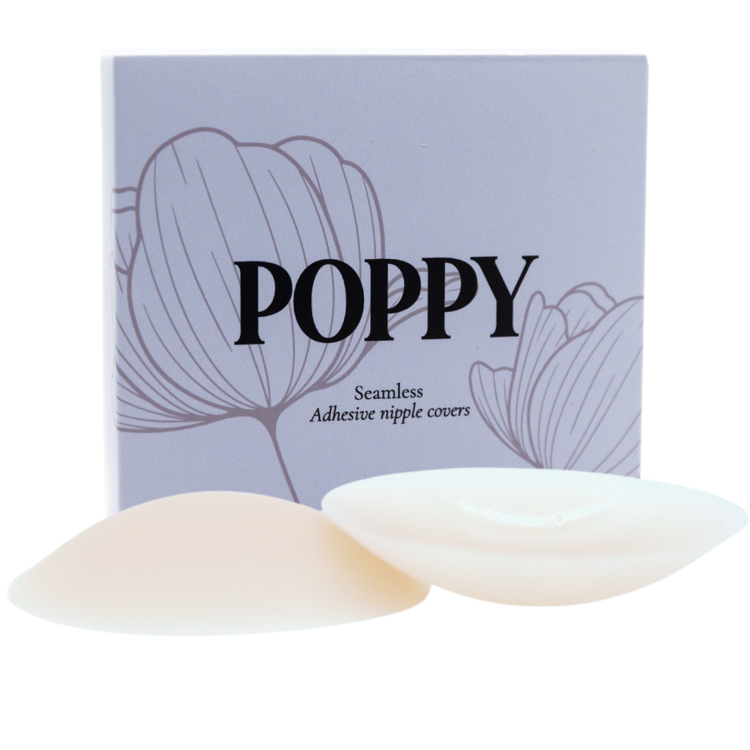 - WEAR EVERYTHING - Wear what you’ve always wanted -strapless dresses, backless shirts, deep V-necks, without worrying about bra straps or nipple show through. Work, relax, exercise, swim, and even dance the night away while Poppy’s adhesive keeps your covers firmly in place.