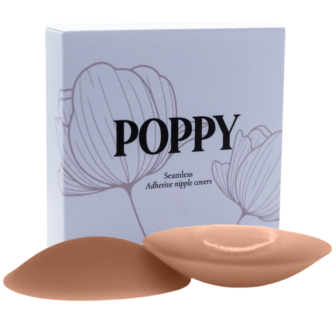 - WEAR EVERYTHING - Wear what you’ve always wanted -strapless dresses, backless shirts, deep V-necks, without worrying about bra straps or nipple show through. Work, relax, exercise, swim, and even dance the night away while Poppy’s adhesive keeps your covers firmly in place.